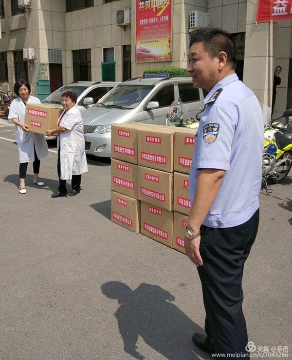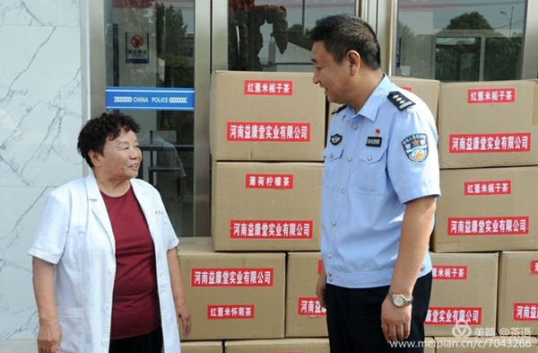 6月22日上午,河南益康堂實業(yè)有限公司董事長、沁陽市益康堂中醫(yī)診所負責人、知名中醫(yī)專家楊曉瑞和她的團隊帶著價值七萬余元的中藥制劑,冒著酷暑來到沁陽市公安局,慰問一線公安干警。她們先后走訪了沁陽市公安局特巡警大隊、沁園派出所和交警大隊,給基層干警義診,感激公安干警維護社會穩(wěn)定的辛苦付出……